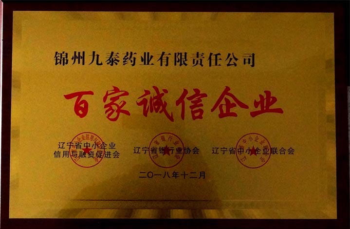 公司被省中小企业信用与融资促进会、省银行业协会、省中小企业联合会授予辽宁省“百家诚信企业”荣誉称号。