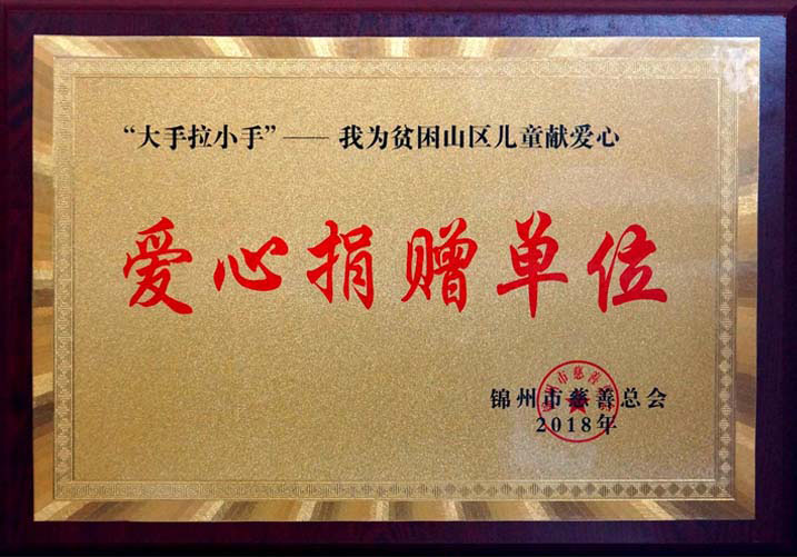4月11日,锦州市慈善总会召开总结表彰大会,表彰在2018年慈善捐赠工作中表现突出的先进单位,我公司被授予“爱心捐赠单位”称号。